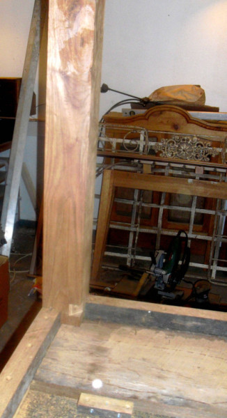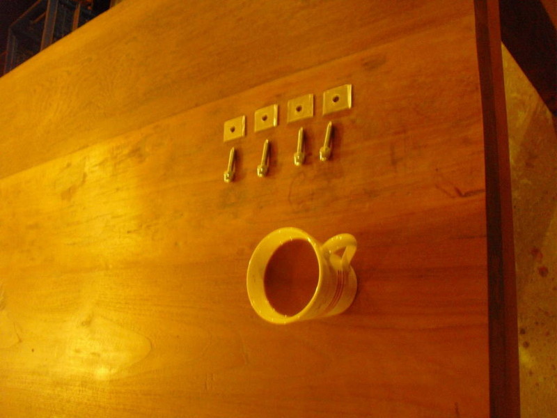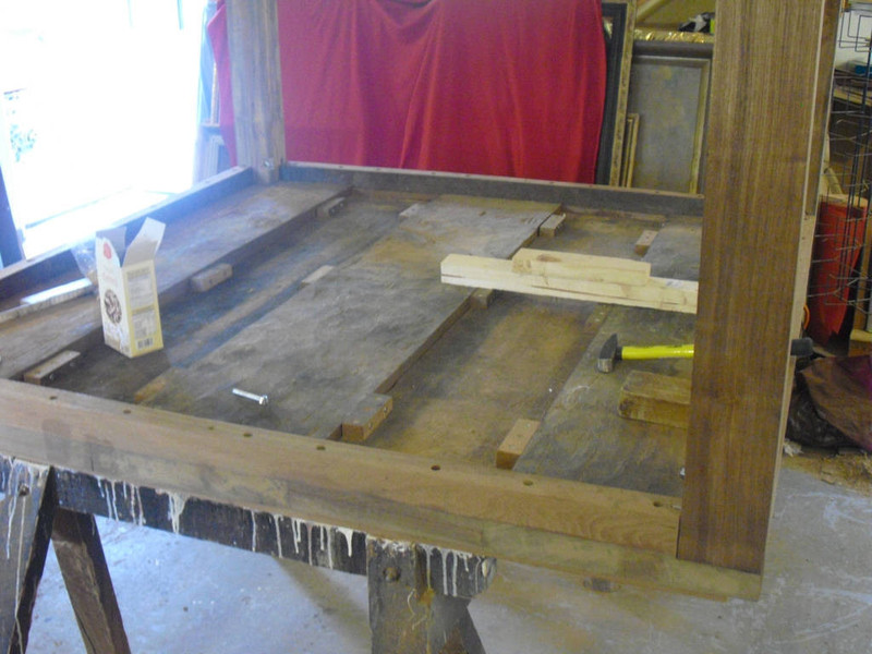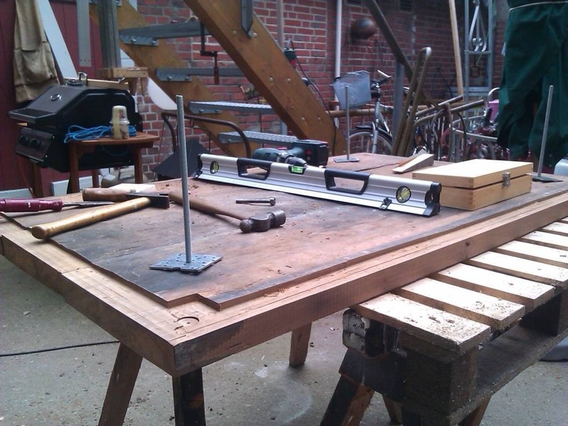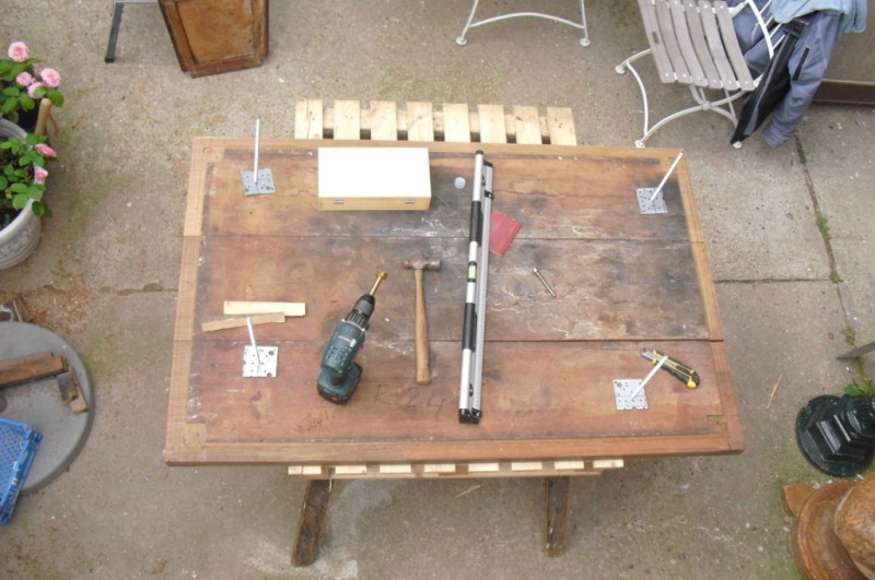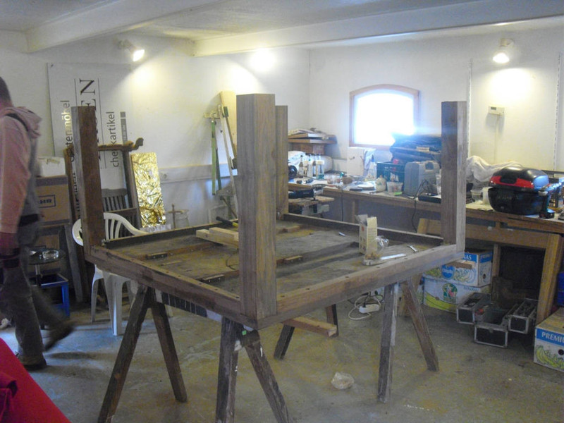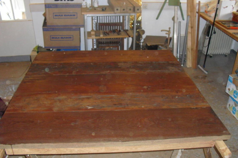 Eine befestigung der Beine an der Zarge war wegen der geringen Stärke nicht möglich. Die Platte allein wiegt etwa 70 kg.