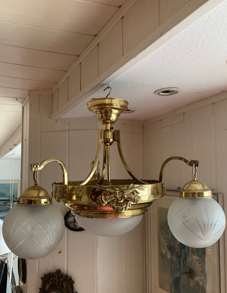 Jugendstil Deckenlampe mit Zug,L 84 - 115 cm, D 35 cm. € 280,00