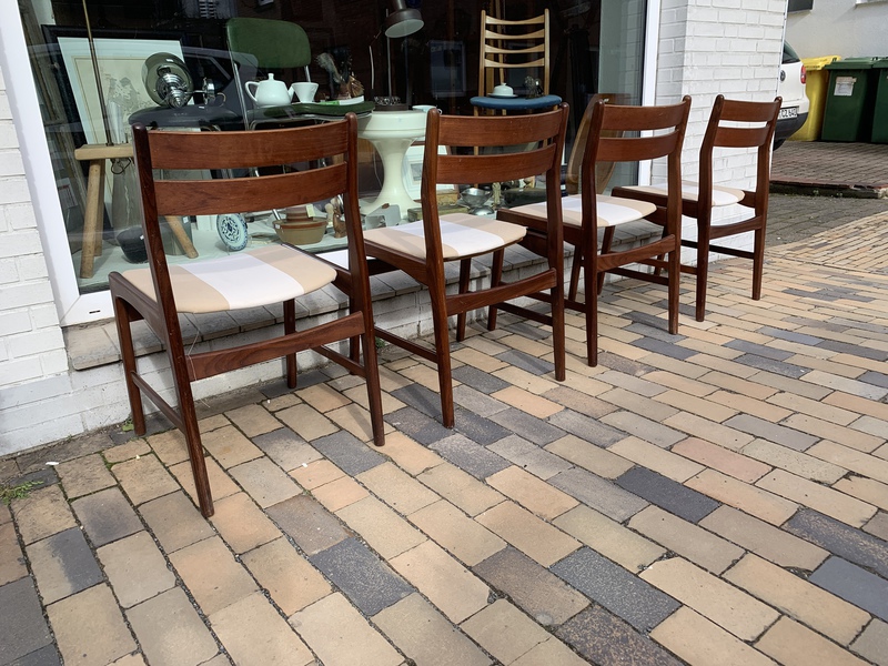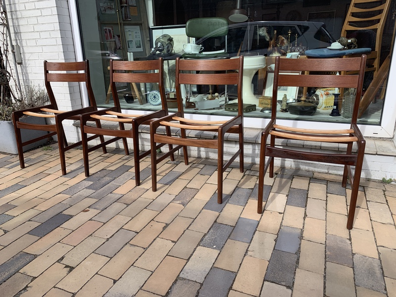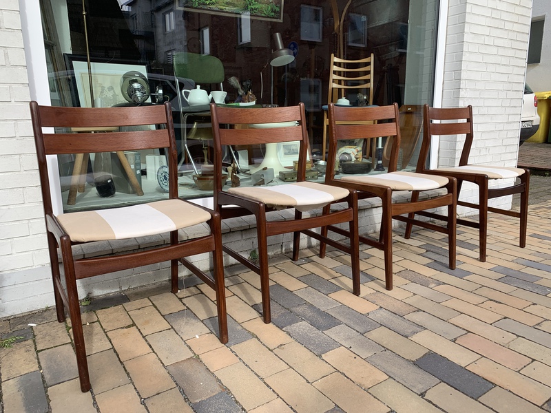 Vier Stühle, Teak, made in Denmark, neu bezogen, sehr beuem, €480,00